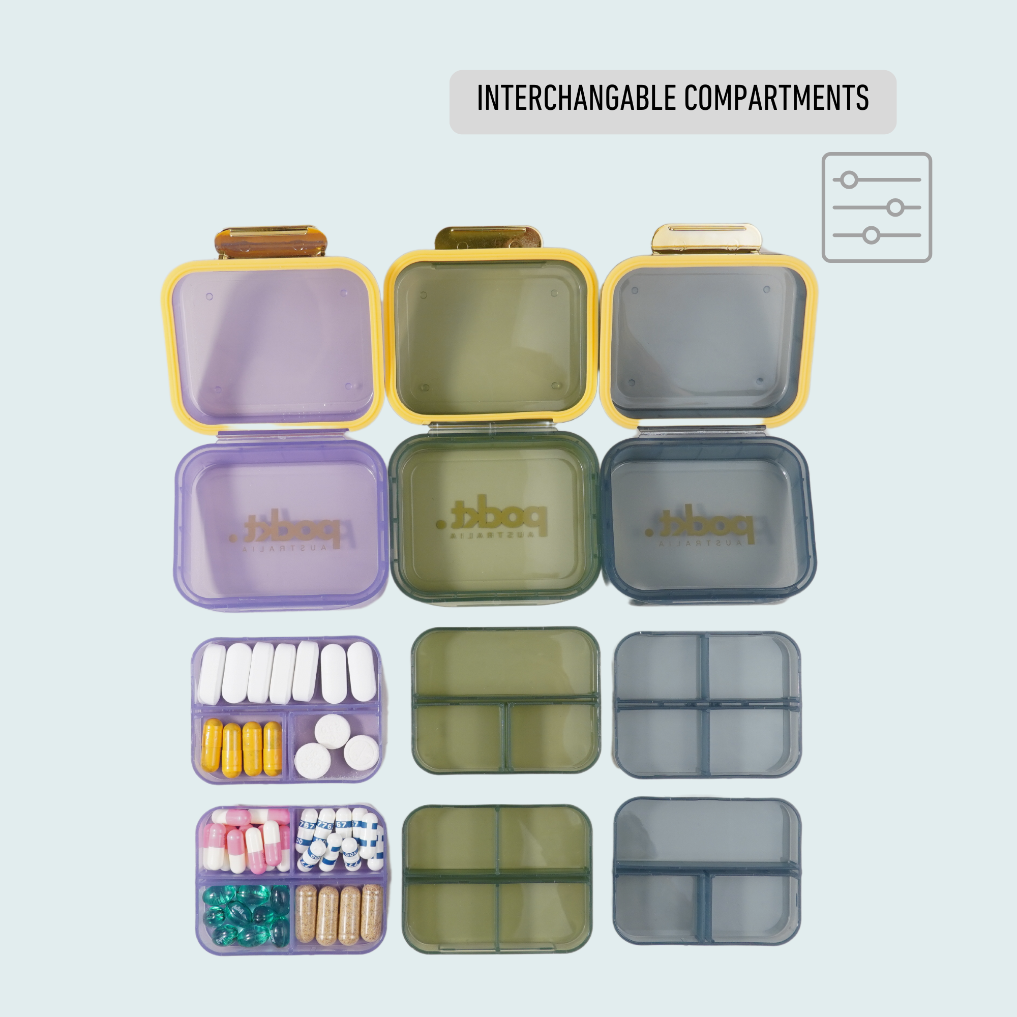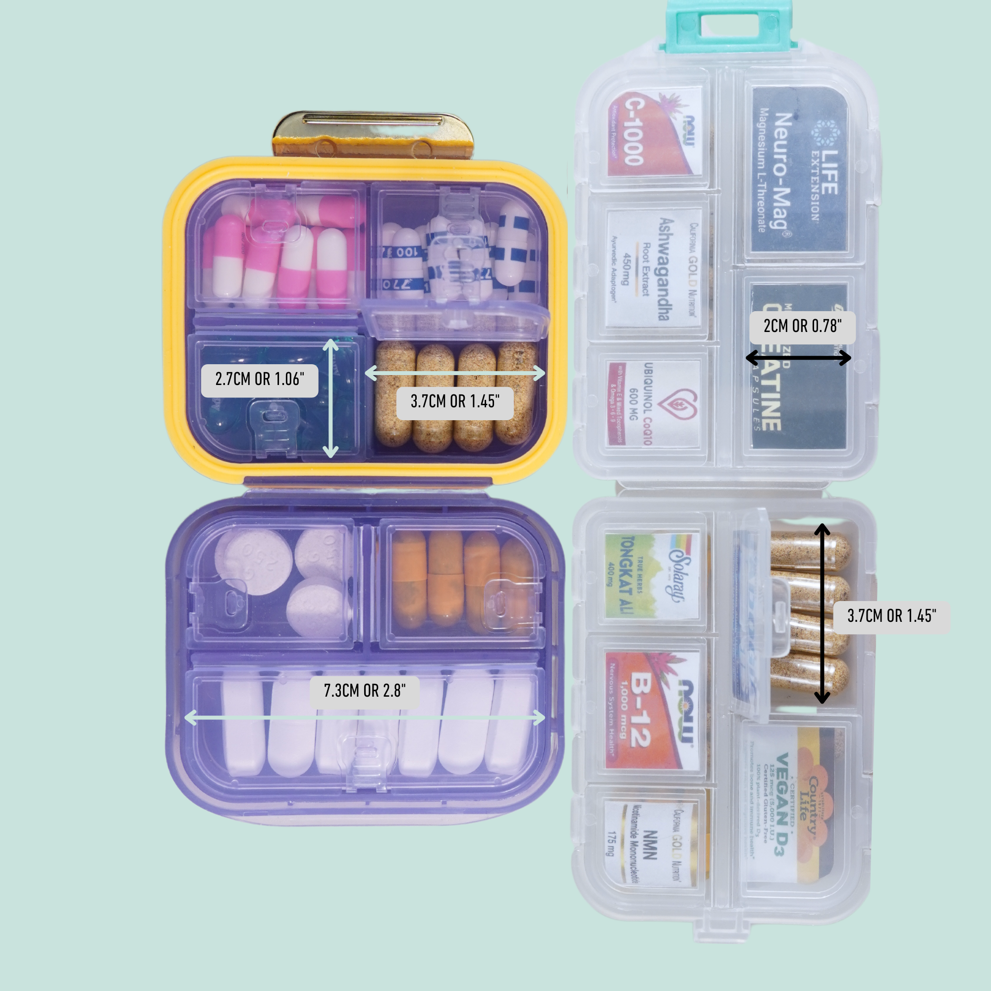 Yes, Pockt™ is designed to accommodate all pill sizes, from large tablets like Advil to small vitamins. The 10 compartments ensure every medication has its place.